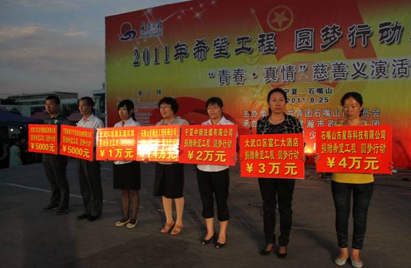 寧夏中鋼洗煤有限公司2011年希望工程行動捐...2011年石嘴山市參加高考的學(xué)生取得了驕人的成績,一大批學(xué)子將邁進理想的學(xué)堂,但其中部分優(yōu)秀大學(xué)新生因家庭貧困而無力負擔(dān)高額的學(xué)費。為幫助即將進入大學(xué)的經(jīng)濟困難學(xué)生解決實際困難